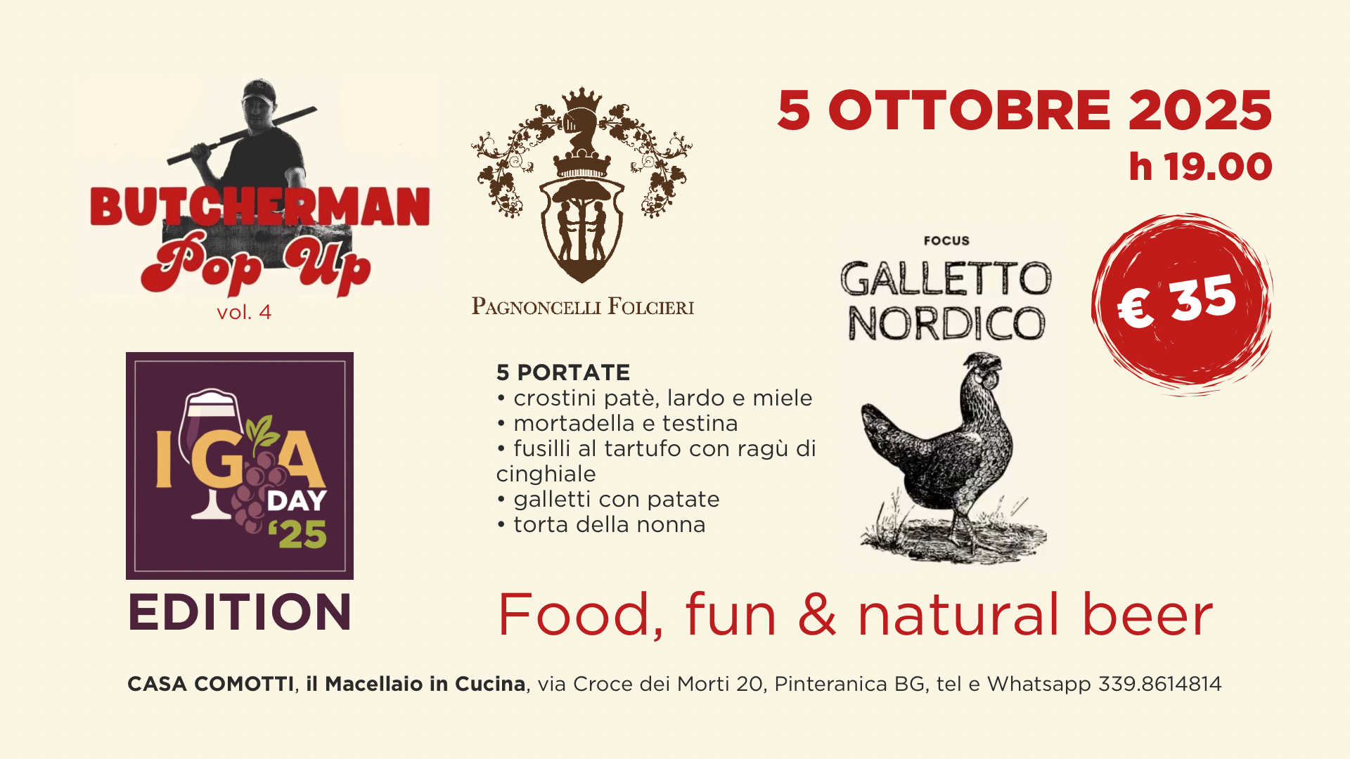 Casa Comotti via Croce dei Morti 20, PonteranicaDomenica 5 Ottobre, festeggia l'IGA Day, la Giornata Internazionale dedicata alle birre Italian Grape Ale, con Cantina Pagnoncelli Forcieri, Scanzorosaciate BG. A Casa Comotti, una serata con menù speciale, abbinato alle birre IGA, Persis 8.5% ABV, al mosto di Moscato di Scanzo e Sirio 8% ABV, al mosto di Moscato Giallo. Menù a € 35,00, […]